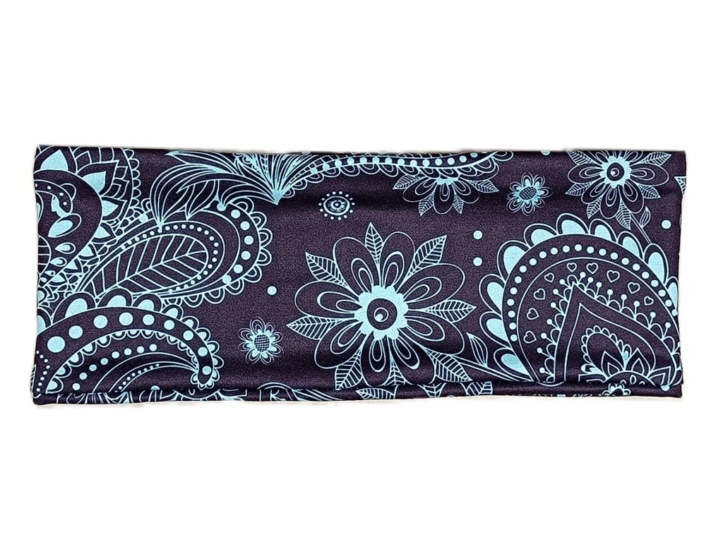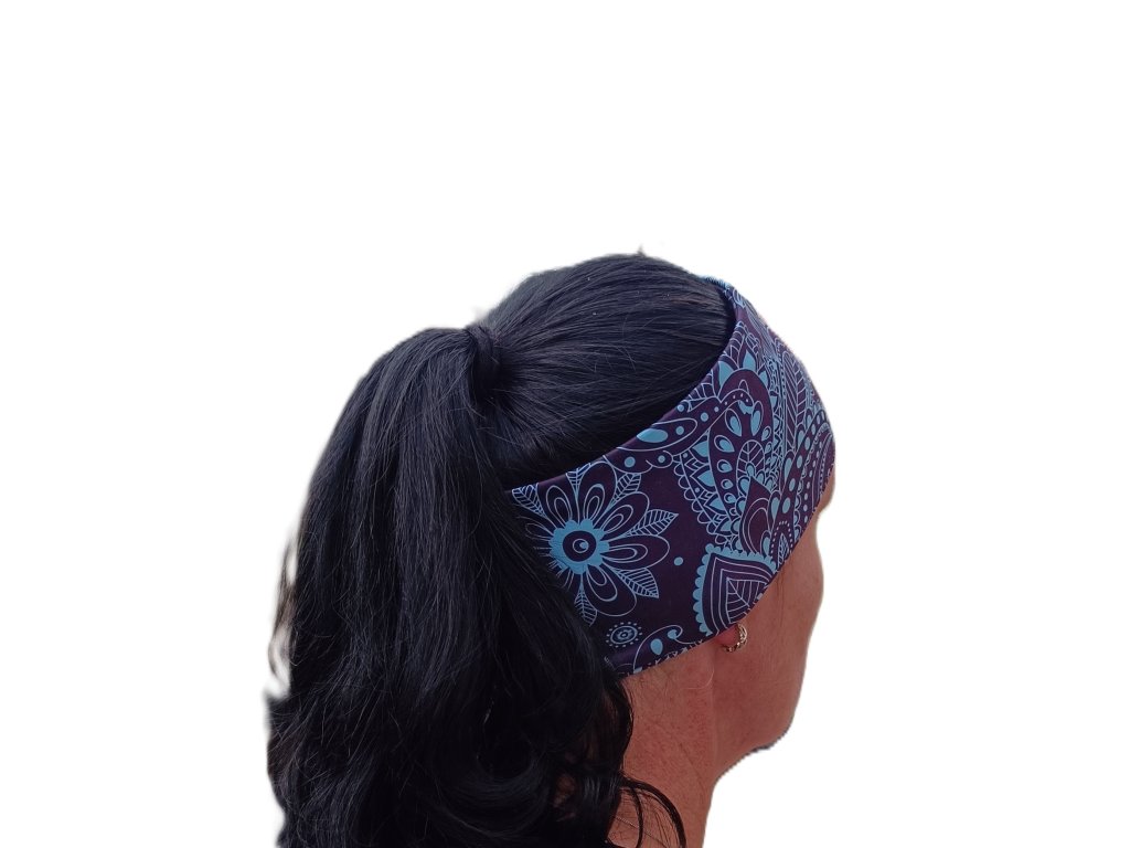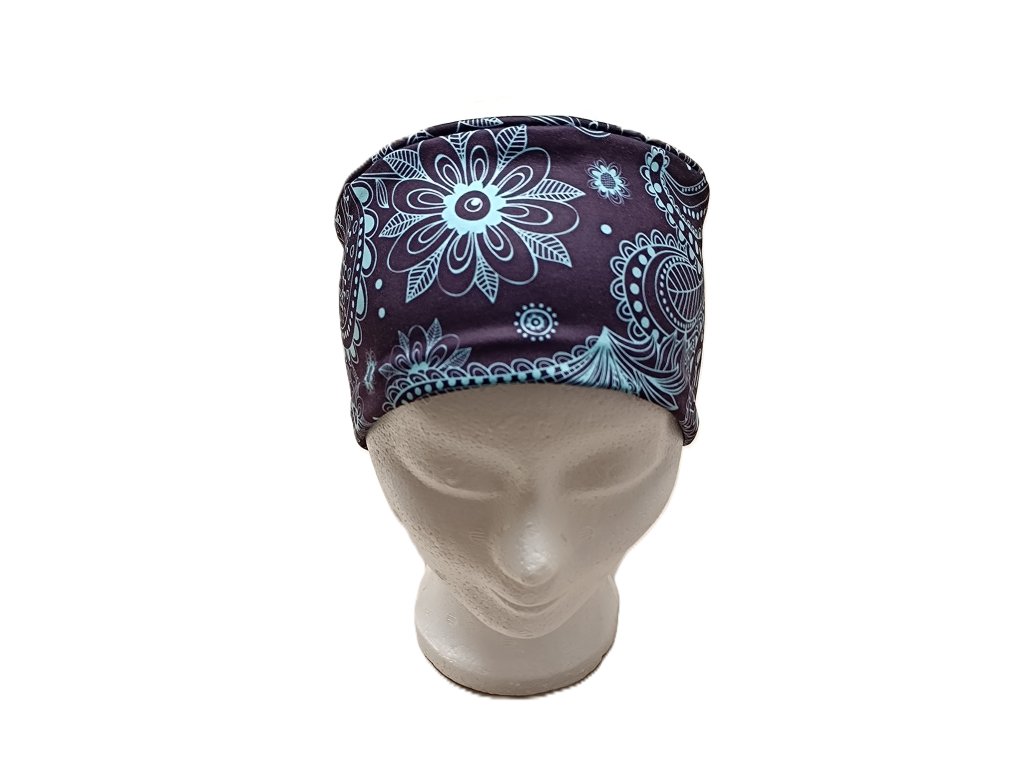 Čelenka z funkčního úpletu tyrkysové ornamenty na fialové