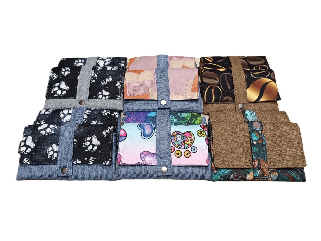 Ručně šitý obal na PETPASS, výkonnostní knížky apod je vyroben z kvalitní kočárkoviny a podšívky, se zapínáním na druk. Obal je šitý tak, aby se vám do něj vešlo více dokladů najednou. Tak může mít váš pejsek všechny doklady pohromadě. Ocení zvlášť majitelé více psů. Ušetří vám to věčné listování, který doklad kterému pejskovi patří :)