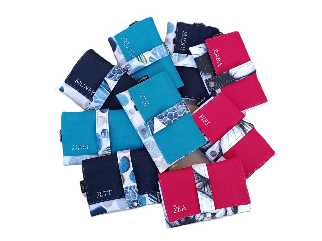 Ručně šitý obal( taštička) na PETPASS, výkonnostní knížky apod je vyroben z kvalitní kočárkoviny a podšívky, se zapínáním na druk. Obal je šitý tak, aby se vám do něj vešlo více dokladů (např.očkovací průkaz i výkonnostní knížky). Tak může mít váš pejsek všechny doklady pohromadě. Ocení zejména majitelé více psů. Na klopu lze za příplatek 50,-Kč vyšít jméno psa.