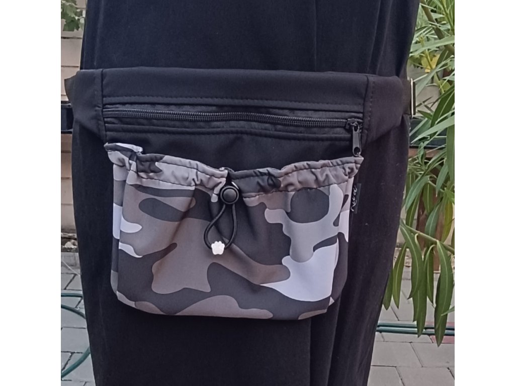 Pamlskovník je vyrobený z kvalitního softshellu, přední kapsa na pamlsky je opatřena podšívkou proti promaštění a gumičkou pro snadný přístup k pamlskům. Velká kapsa na zip slouží k uschování všech vašich nezbytností.